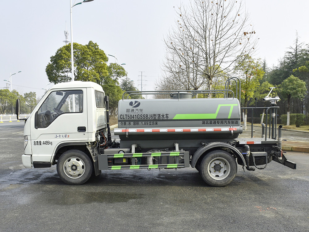 福田小卡 3 方小型灑水車產(chǎn)品主要技術(shù)參數(shù) 序號(hào) 名稱 型號(hào)、規(guī)格 1 整車型號(hào) CLT5041GSSBJ6 型灑水車 2 發(fā)動(dòng)機(jī)型號(hào) Q23-115C60 3 發(fā)動(dòng)機(jī)馬力/功率 全柴 115 馬力/85KW 4 發(fā)動(dòng)機(jī)排量 2300ML 5 變速箱 萬(wàn)里揚(yáng) 5 檔 6 輪胎規(guī)格 6.50 鋼絲胎 7 軸距 2850 8 總質(zhì)量 4495KG 9 整備質(zhì)量 2560KG 10 額定載質(zhì)量 1805KG 11 整車尺寸(長(zhǎng)×寬×高) 5.47*1.98*2.2 12 罐體容積 2.2 方 13 燃料種類 柴油 14 排放標(biāo)準(zhǔn) 國(guó)六 15 水泵型號(hào) 40/50 16 罐體材質(zhì) Q235 碳鋼四. 產(chǎn)品功能展示 后對(duì)沖 后灑 側(cè)噴 高炮