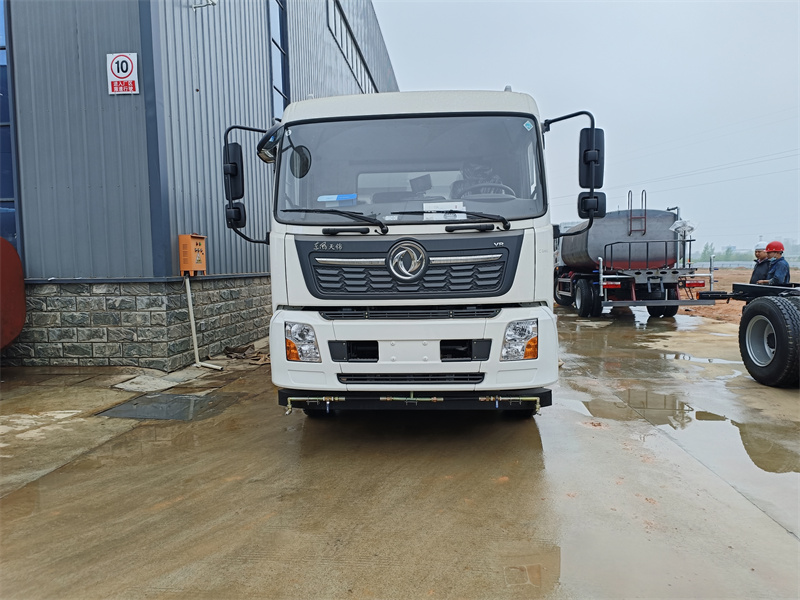 洗掃車,道路清掃車前端加有可左右上下擺動的高壓沖嘴,可對局部頑漬進行沖洗。開式液壓系統驅動左右立掃升降、左右掃肋旋轉、吸嘴升降、垃圾箱后門開閉、垃圾箱傾翻復位等機械動作。底盤變速箱側取力器驅動低壓水泵,實現灑水車的低壓沖洗功能。工作裝置電控系統采用PLC智能化控制,一鍵式作業起動和停機,操作方便,大大減少誤操作。