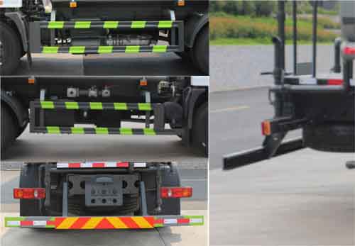 罐體總容量:10.5立方米;罐體有效容積:10立方米;罐體外形尺寸(長×長軸×短軸)(mm):4200×2300×1450;ABS型號:3631010-C2000,J ABS;ABS生產企業:東科克諾爾商用車制動系統(十堰)有限公司,焦作博瑞克控制技術有限公司;隨底盤選裝駕駛室;側、后防護材料均為:Q235碳鋼,連接方式均為:螺栓連接,后部防護截面尺寸(mm):120×50,后部防護離地高度(mm):450;該車主要用于路面灑水及園林綠化;主要裝置為水罐及噴灑裝置;其他說明:僅采用3950mm軸距;選裝噴灑裝置樣式,選裝后部箭頭燈裝置,選裝弧形噴灑裝置,選裝水炮支架位置,選裝自動球閥安裝位置,選裝自動炮裝置樣式,前伸500mm,整車長度為8150mm;隨底盤選裝尿素罐/電瓶框/儲氣筒布置位置,選裝罐體頂部高位花灑裝置,選裝前部鴨嘴裝置,選裝工具箱裝置,選裝罐體頂部方形罐口裝置.后部作業燈僅在作業時開啟,車輛行駛過程中不可開啟.選裝尾部自流口樣式.