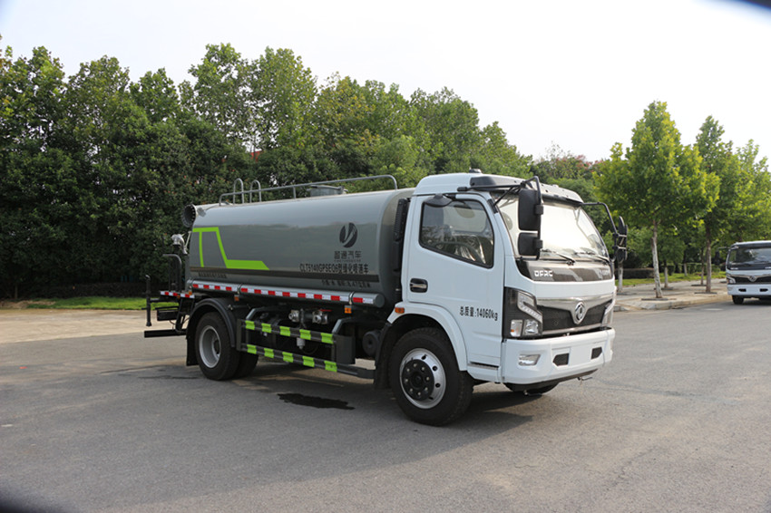 6檔變速箱,825R20鋼絲胎,帶方向助力,ABS,斷氣剎,帶暖風不帶制冷。改裝配置:罐體用4MM碳鋼板制作,罐內隔板具有防波作用,以減低汽車行駛時罐體的沖擊。整車帶一個專用灑水泵(垂直最大吸程6米),灑水寬度14米,射程28米。多功能灑水車配備2個前沖(噴)(能將路面泥巴,塵土,垃圾沖干凈);2個后灑(能均勻地將水灑在路面,一次灑水寬度14米)。東風朝柴156馬力國五柴油發動機東風D7多利卡8.5噸灑水車 詳細配置底盤配置:底盤采用東風2030單排帶翻轉駕駛室2個側噴(花灑)(能均勻地將路旁綠化帶澆灌)。