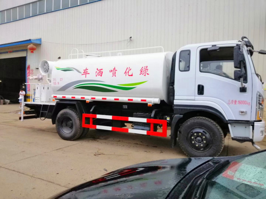 吸程≧7米,灑水寬度≧14-16米,射程≧25-30米,引水時間<5min,流量60m3/h。前沖(噴)、后灑、帶側噴(花灑)、帶后工作平臺、平臺上安裝綠化灑水高炮(炮噴射形狀可調節:直沖、大雨、中雨、毛毛雨、霧狀、可連續調節,360°旋轉),配消防接口,自流閥,濾網,帶自吸自排功能。配備大功率專用灑水泵,泵可自吸自排,安裝過濾網,帶消防接口,可通過消防栓進水,帶自流閥,隨車選裝20米綠化卷盤,可噴灑農藥,罐體金屬漆。罐體有橢圓和方圓罐兩種,可根據用戶的要求定做