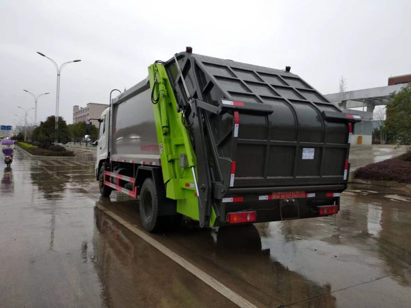 國六東風天錦壓縮式垃圾車采用新款平面弧形廂體,廂體材料為武鋼優質碳鋼,有效壓縮容積12-14立方,PLC一鍵操作控制,手電一體操作模式,兩側雙電控,帶駕駛室內操作,底板支撐加強,雙向壓縮,開放式易清潔污水箱。壓縮式垃圾車采用機電液一體化技術,借助機、電、液聯合自動控制系統、電腦控制、手動操作系統,通過填裝器和推鏟等專用裝置,實現垃圾倒入、壓碎或壓扁、強力裝填,把垃圾擠入車廂并壓實和推卸,污水全部進入污水收集箱,解決了垃圾運輸過程中的二次污染的問題。壓縮式垃圾車具有自動反復壓縮以及蠕動壓縮功能,壓縮比高、密封性好、裝載量大﹑操作方便、環保性好﹑整車利用功率高等優點。作業自動化,垃圾收集方式簡便、高效。東風天錦壓縮式垃圾車作業系統具有電腦控制和手動操縱雙重功能,大大地保障和提高車輛的使用率,而且后翻轉機構有幾種選擇:1、掛塑料桶式翻轉機構;2、掛鐵桶式翻轉機構;3、擺臂式翻轉機構; 4、簸箕斗式翻轉機構