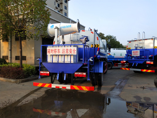 罐體容積:5立方,罐體采用機器壓板一次性成型技術,罐體加厚至4mm,采用先進旋邊機,罐體包罐機工藝保證了罐體制作的精度和美觀。全國獨有烤漆工藝,防腐除銹,多層底漆、面漆噴涂。 功能齊全,配備前沖、后灑、側噴、綠化高炮,采用優質水泵,合理設計水路管道,氣控取力器,作業能力強,提高了車輛的使用效率。