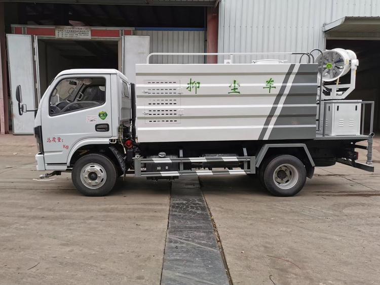 我們從上方抑塵車圖片看出,在底盤下方有前沖功能,在后置平臺(tái)有后灑功能和綠化高炮功能,兩輪子中間有側(cè)噴功能,這樣抑塵車就具有了灑水車的全部功能,前沖,后灑,側(cè)噴,綠化高炮,但是真的只有這些功能嗎?不是還有一項(xiàng)噴霧降塵功能,霧炮機(jī)組,這是抑塵車的核心功能。