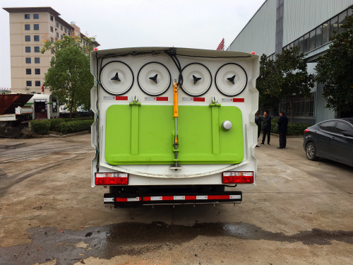 1.  方箱,碳鋼水箱,碳鋼垃圾箱,中置吸盤及副吸盤,五十玲57馬力副發動機,進口電磁閥組,匯博油缸,西門子或法國施耐德控制開關,CTOZ液壓閥組合電控開關,PLC一健控制系統,雙向操作按扭,廈門南超免維護自動離合器(保質期二年) 臺灣北玻免維護風機,手動泵應急系統,主發動機取力電液控制系統(車輛轉場后垃圾箱舉升,傾 卸垃圾,后門開啟時無需起動副發動機),先進的自動震塵系統進口防水材料進箱,自動脈沖清理功能,右/后工作影像。