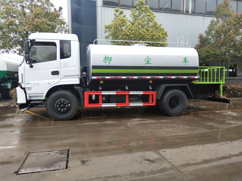 東風御虎12噸灑水車 罐體采用武鋼優質碳鋼板,采用國標5mm厚制作,罐體內設有隔浪板,具有防波浪作用,以減低汽車行駛時,對罐體的沖擊,射程可達35米,垂直吸程≥7米,灑水寬度≥14-16米,帶自吸自排功能,消防栓接口,前沖,后灑,側噴,后工作平臺帶綠化水炮,綠化灑水炮(噴射形狀可調)直沖狀、大雨、中雨、毛毛雨,可連續調節,自流閥,三通濾網,大功率灑水泵,2根3米輸水管,金屬漆,其它灑水車標配。