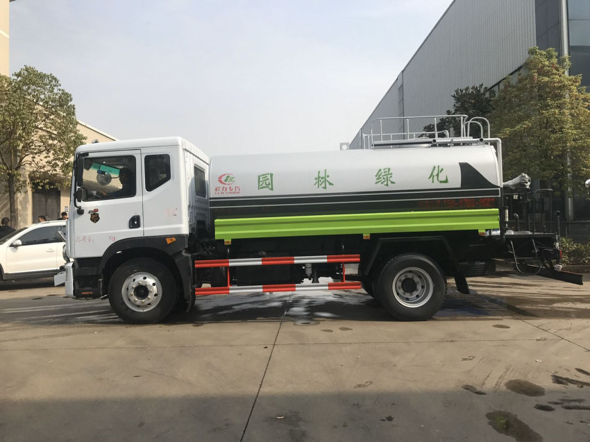 灑水車吸程≧7米,灑水寬度≧14-16米,射程≧25-40米,引水時間<5min,流量60m3/h。前沖(噴)、后灑、帶側(cè)噴(花灑)、帶后工作平臺、平臺上安裝綠化灑水高炮(炮噴射形狀可調(diào)節(jié):直沖、大雨、中雨、毛毛雨、霧狀、可連續(xù)調(diào)節(jié),360°旋轉(zhuǎn)),配消防接口,自流閥,濾網(wǎng),帶自吸自排功能。配備大功率專用灑水泵,泵可自吸自排,安裝過濾網(wǎng),帶消防接口,可通過消防栓進水,帶自流閥,此車尾部加裝大功率農(nóng)藥噴灑炮,