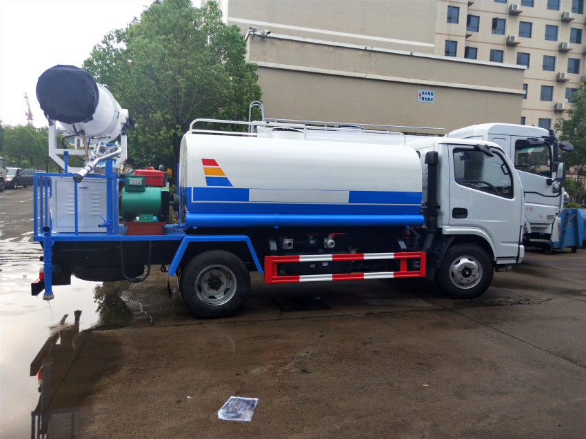 功能配置:帶前部沖洗路面噴灑裝置、后部扇形降塵噴灑裝置,兩側面噴灑裝置,帶后部工作平臺、平臺上安裝綠化灑水炮(炮噴射形狀可調),可調直沖狀、大雨、中雨、毛毛雨,可連續調節,射程可達28米,垂直吸程6.5米,揚程14米,另加裝高效率車載式風送噴霧機,噴藥炮霧化效果好,可遠程噴霧,水平射程達25米。帶消防接口、自流閥,可自吸自