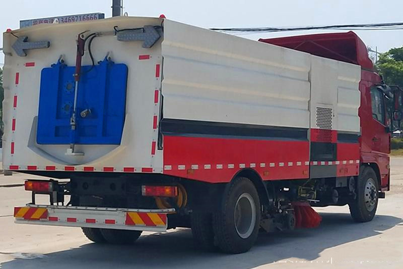 11、陜汽8噸洗掃車的垃圾箱內帶有自潔功能,在垃圾傾倒完成后可將箱內的殘留垃圾沖洗干凈,減輕環衛工人的負擔。