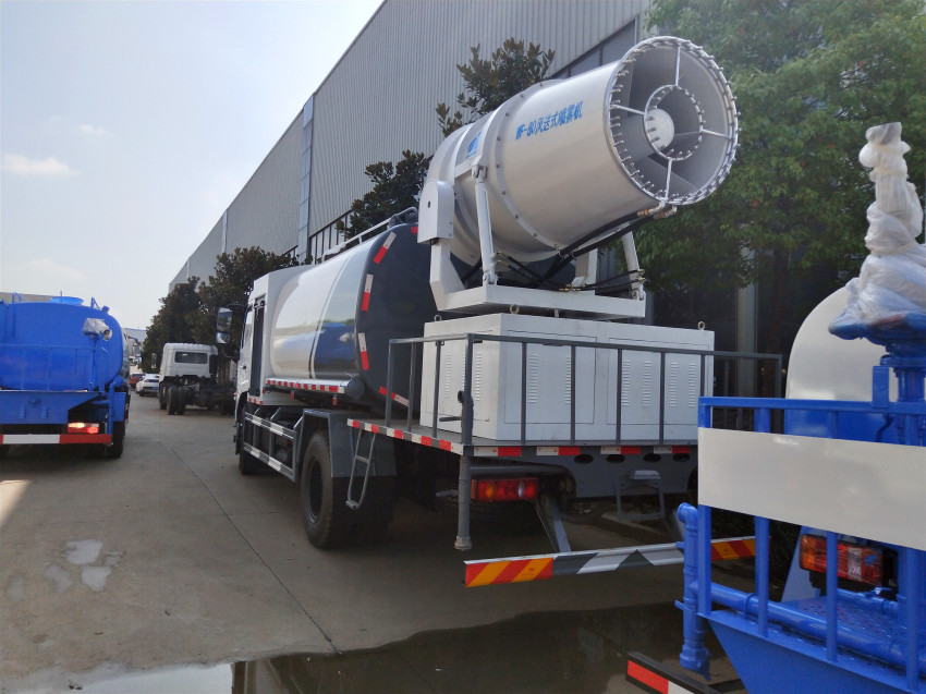 4.灑水車前噴頭位置較低,靠近地面,噴灑壓力較大,可用于沖洗路面;后噴頭位置較高(灑水車后噴頭一般左右各安裝一個),灑水面較寬,可用于公路施工灑水,使用后噴頭時,應將前噴管關閉;使用可調噴頭灑水時,灑水寬度可根據需要調整。灑水寬度越寬,中間重疊量越少,灑水密度越均勻。