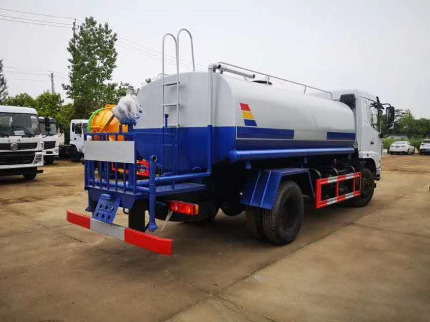 配備大功率專用灑水泵,泵可自吸自排,安裝過濾網,帶消防接口,可通過消防栓進水,帶自流閥,隨車選裝20米綠化卷盤,可噴灑農藥,罐體金屬漆。罐體有橢圓和方圓罐兩種,可根據用戶的要求定做