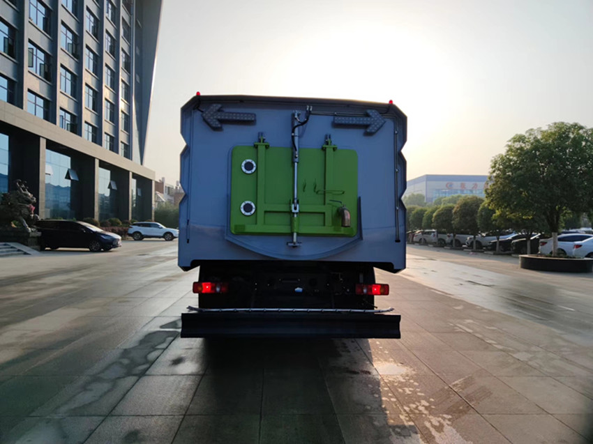 垃圾箱內(nèi)設(shè)有自潔裝置,垃圾箱處于傾卸狀態(tài)時,打開自潔裝置,垃圾箱內(nèi)部將會自動得到清洗,且清洗效果**。自潔裝置的操作方法見后述的垃圾箱自潔裝置。
