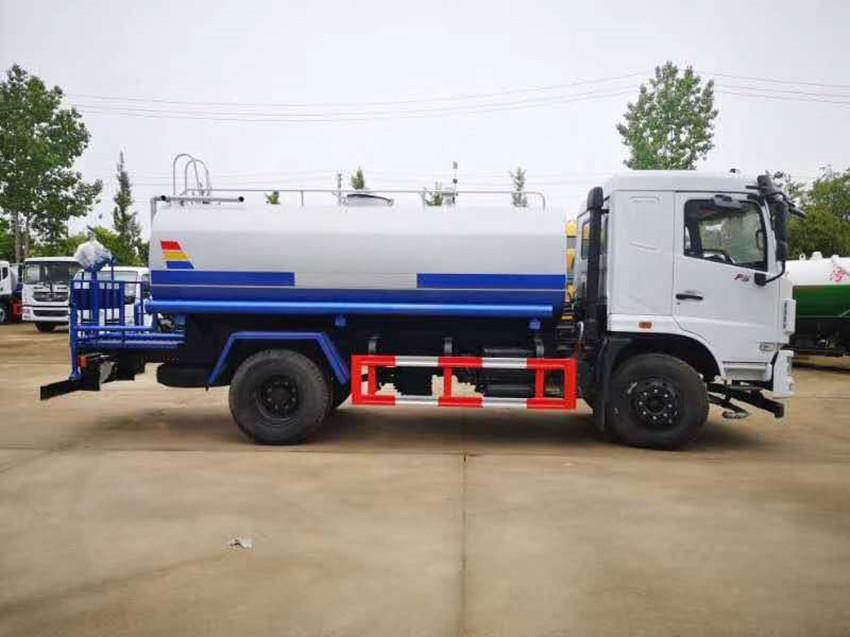 3.新款東風(fēng)12噸灑水車,東風(fēng)T3駕駛室,玉柴四缸160馬力發(fā)動(dòng)機(jī),3950mm軸距,五檔帶副變速箱,8噸后橋,9.00R20鋼絲胎,ABS。上裝灑水功能可以根據(jù)用戶需要設(shè)計(jì)定做。前沖洗噴頭、后灑水噴頭、鴨嘴側(cè)噴頭、綠化高壓水炮、消防栓管路接口、自流閥等裝置。標(biāo)配60/90型自吸式抽/排灑水泵,抽水流量可達(dá)到60立方/小時(shí),前沖灑水寬度大于14米,水炮射程可達(dá)28米以上,吸水落差小于10米。帶過濾網(wǎng),可有效過濾罐體內(nèi)部和野外河流池塘內(nèi)的水中雜質(zhì),避免堵塞管道,可拆卸式濾網(wǎng)應(yīng)定期檢驗(yàn)清洗。