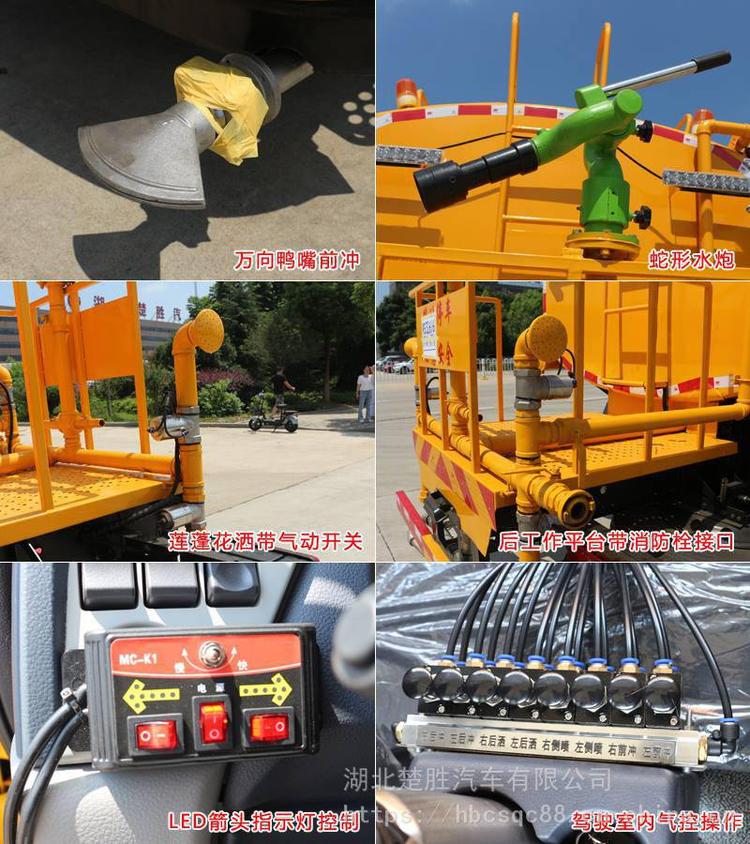 6、弧形噴霧架(選裝),帶10-12個噴霧嘴,噴出的水霧像孔雀開屏一樣,在夏季能為空氣增濕降溫,且水霧細密,落在路面不易產生污水帶;