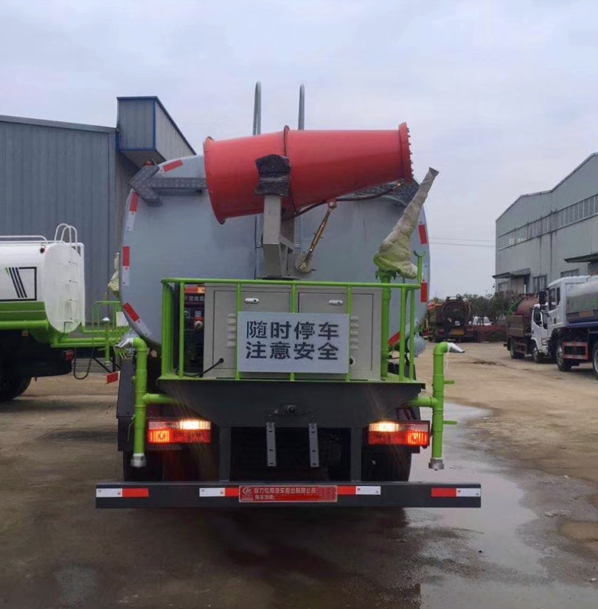 灑水車功能配置:帶前部沖洗路面噴灑裝置、后部扇形降塵噴灑裝置,兩側面噴灑裝置,帶后部工作平臺、平臺上安裝綠化灑水炮(炮噴射形狀可調),可調直沖狀、大雨、中雨、毛毛雨,可連續調節,*大射程可達28米,垂直吸程6.5米,揚程14米,另加裝高效率車載式風送噴霧機,噴藥炮霧化效果好,可遠程噴霧,水平射程達25米。帶消防接口、自流閥,可自吸自排。