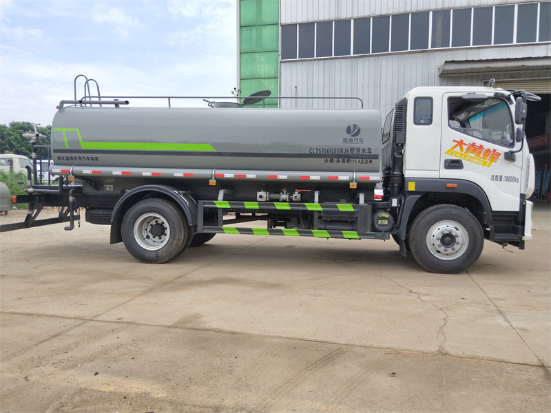 | 上裝配置: | 罐體用4MM碳鋼板制作,罐內隔板具有防波作用,以減低汽車行駛時罐體液體的沖擊。整車帶一個專用灑水泵(垂直最大吸程6米),灑水寬度14米,射程28米。多功能灑水車配備2個前沖(噴)(能將路面泥巴、塵土、垃圾沖干凈);2個后灑(能均勻地將水灑在路面,一次灑水寬度14米)、2個側噴(花灑)(能均勻地將路旁綠化帶澆灌)、帶1個后工作平臺,平臺上安裝1個綠化灑水高炮(灑水炮可全方位旋轉,可連續調成直沖狀、大雨、小雨、毛毛雨,霧狀可調節沖洗高大樹木),引水時間<5min,流量90m3/h。帶1個消防接頭,帶1個自流閥,1個過濾裝置、人性化爬梯及側防護欄,安裝灑水音樂喇叭。 | ||