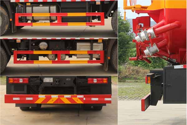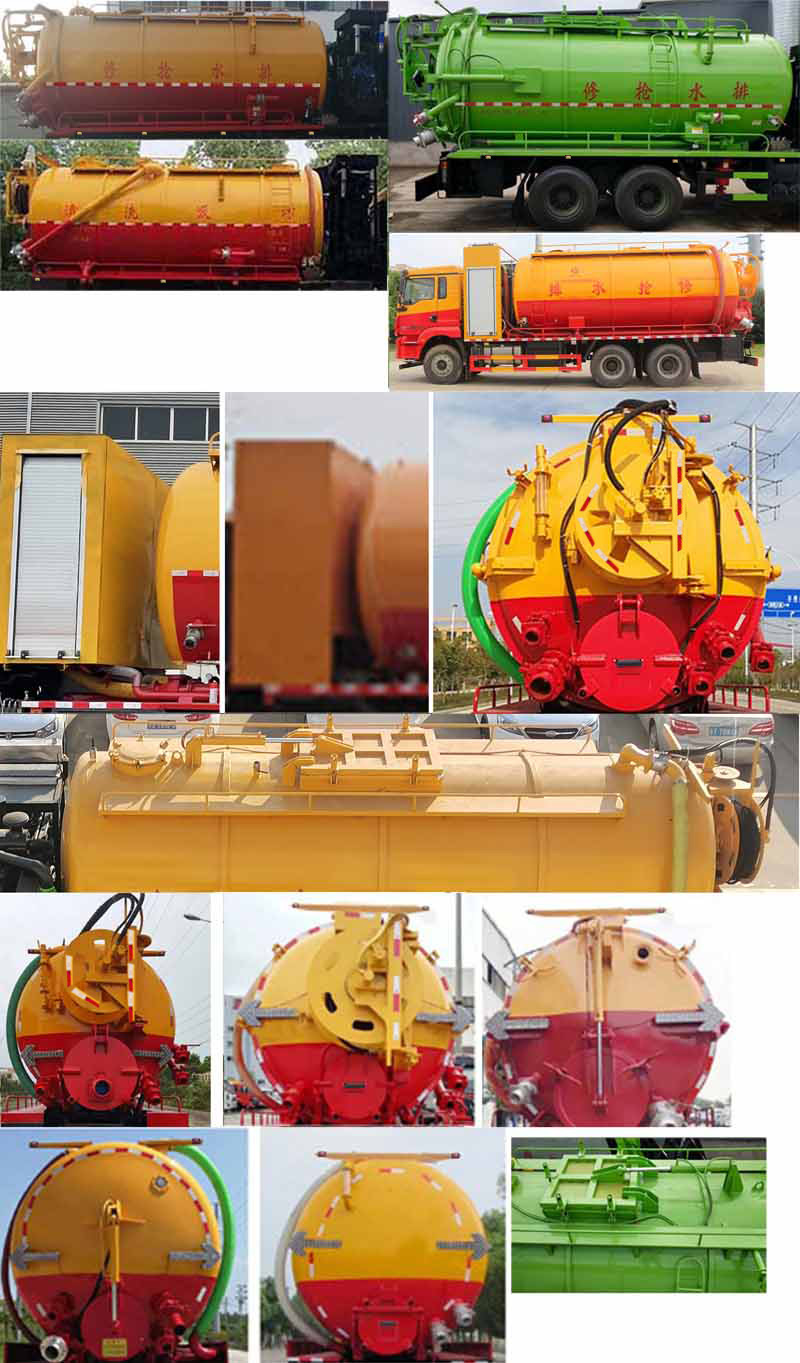 陜汽18方清洗吸污車該車主要用于下水道系統的清理和疏通工作;主要裝置為罐體及清洗吸污裝置;罐體尺寸為(總長×直徑)(mm):6050×2150(前部含封頭長2700mm為清水罐,后部含封頭長3350mm為污水罐);6100×2100(前部含封頭長2700mm為清水罐,后部含封頭長3400mm為污水罐);污水罐總容量:9.345立方米,污水罐有效容積:8.9立方米,介質:液態污物,清水罐總容量:7.476立方米,清水罐有效容積:7.12立方米,介質:水;兩罐獨立,且不能同時滿載,清洗功能時用清水罐,吸污功能時用污水罐,兩個罐體不能同時使用;側、后防護材料均為:Q235碳鋼,連接方式均為:焊接連接,后部防護截面尺寸(mm):200×60,后部防護離地高度(mm):490;ABS系統生產廠家及型號分別為:西安正昌電子股份有限公司(ZQFB-V);.僅采用底盤4375+1400(mm)軸距改裝.選裝側面及后部樣式;選裝罐體頂部結構.隨底盤選裝駕駛室.