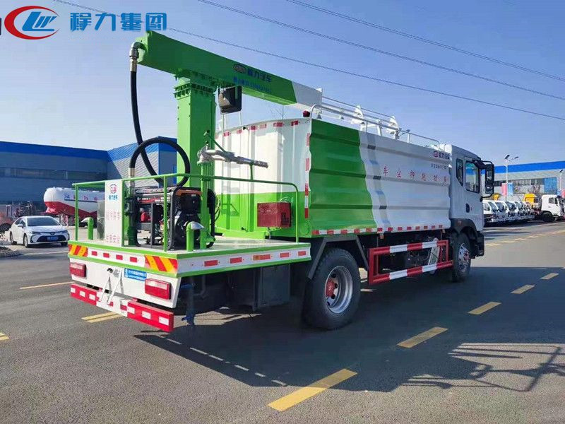 上裝配置:罐體采用瓦楞方箱制作,材質(zhì)Q235,邊4底5,容積:12-15方,標(biāo)配大功率50/110水泵,萬達(dá)液壓回轉(zhuǎn)機(jī)構(gòu),帶自動回流,整車氣動控制,駕駛室操作,箱頂2個1.5千瓦電機(jī),科普8千瓦發(fā)電機(jī)組,3個攝像頭(流量表,噴灑桿,整車尾部),駕駛室12寸彩色視頻可回放,液壓控制裝置,并配有液壓防沉淀攪拌裝置,電子流量計,渦流噴射帶噴頭,也可選裝螺旋式不銹鋼噴頭,氣動控制噴頭(一組控制4個噴頭),噴灑高度4.3米-5.2米,勾檔停車可感應(yīng)3米,自動停噴,8個噴嘴,葉片式絞龍機(jī)構(gòu),可選裝灑水車功能(前部沖洗路面噴灑裝置,兩側(cè)面噴灑裝置,帶后部工作平臺、平臺上安裝綠化灑水炮(炮噴射形狀可調(diào)),可調(diào)直沖狀、大雨、中雨、毛毛雨,可連續(xù)調(diào)節(jié),射程可達(dá)28米,垂直吸程≤7米),帶消防接口、自流閥,可自吸自排。)、加裝氣控回流裝置