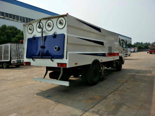 環衛洗掃車該車主要用于城市道路清潔;主要專用裝置為清水箱、垃圾箱、掃刷、吸盤及噴灑裝置;側防護裝置為