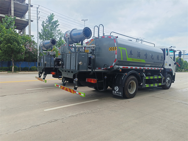 1.產品簡述:縱昂牌 CLT5188GPSEQ6A 型綠化噴灑車標配前噴(鴨嘴)、后對沖、 后灑、側噴、后置式工作平臺,平臺上配置綠化水炮(可 360°旋轉,既可以調 成柱狀,也可以調成霧狀),配備優質大功率專用灑水泵(可自吸自排,可從河 里或池塘抽水到罐體),取力器,雜物過濾網,消防接口,自流球閥系統、取力 器、球閥、濾網均為國家標準產品,主管道加粗,法蘭墊、法蘭盤加厚,大通徑 球閥。整體具備性能優良安全可靠、效率高、流量大、維修方便等特點。