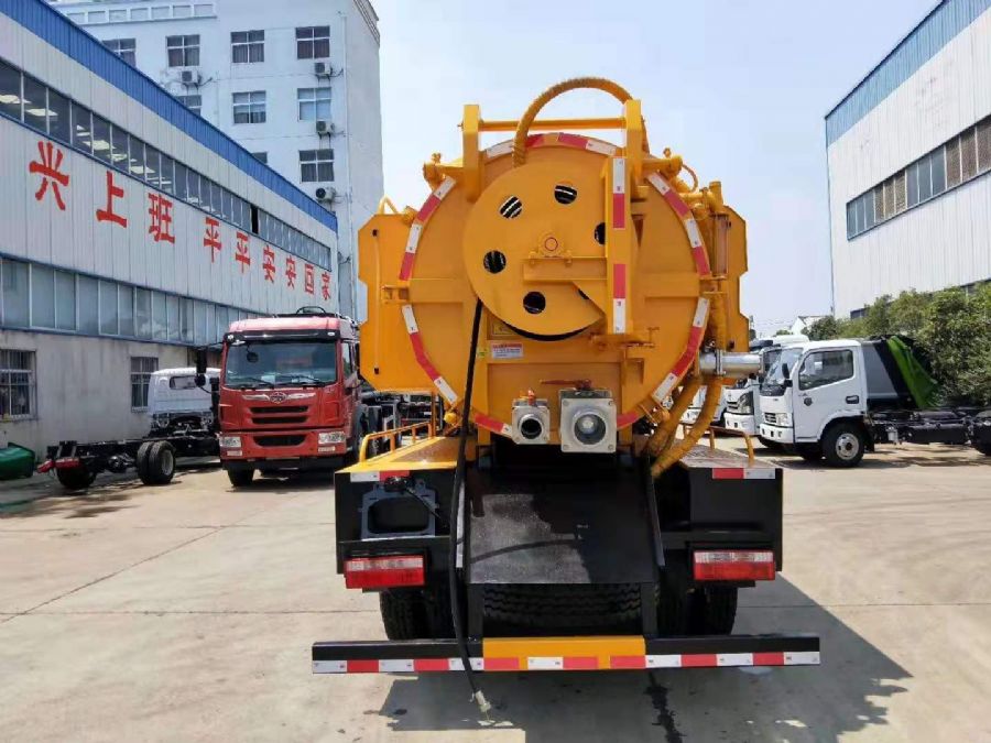 水罐3方,污罐7方,水罐采用4mm武鋼優質碳鋼制作,污罐采用6mm武鋼優質鋼板制作,配SK-9水循環泵/8噸油真空泵(根據客戶需求選裝),170流量高壓泵,24兆帕壓力,真空防溢閥,真空壓力表,視污窗,水罐邊掛接在罐體倆側(可拆卸),污罐體可液壓舉升自卸,后開蓋可液壓開啟,配60米高壓軟管,10個大小不同高壓噴頭,8米吸污管,尾部100mm吸污口,100mm排污口(可根據客戶需求加大),帶免征,環保公告!