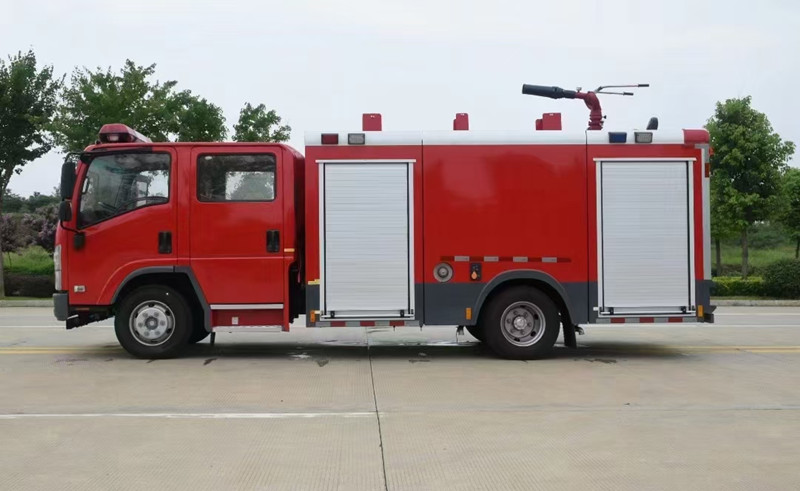 重慶五十鈴2-3噸消防車慶鈴QL1070A6HWY底盤改裝,平頭雙排駕駛室,液壓翻轉(zhuǎn),五十鈴4KH1CN5LS發(fā)動機,98馬力,國五排放,罐體容積2-3立方米;整車結(jié)構(gòu)緊湊,方便靈活,動力性能好,車速高,能自由進出鄉(xiāng)村狹窄道路及小區(qū),具有大型消防車的全套消防功能,上裝箱體的上裝骨架全部采用引進歐洲技術(shù)生產(chǎn)的鋁合金型材制造,整車的重量減少,機動性能和整車載重量提高。除了裝備消防水泵及器材以外,還設(shè)有較大容量的貯水罐及水槍、水炮等。可將水和消防人員輸送至火場獨立進行撲救火災(zāi)。也可以從水源吸水直接進行撲救,或向其他消防車和滅火噴射裝置供水。在缺水地區(qū)也可作供水、輸水用車,主要適用于大中城鎮(zhèn)、鄉(xiāng)村狹窄街道、城市小區(qū)、繁忙的批發(fā)市場等場所的一般物質(zhì)滅火,閑暇時可用于園林噴灌、道路清灑。