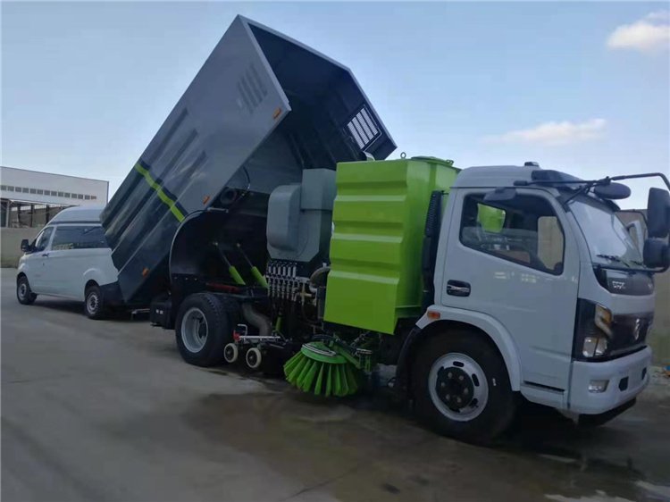 東風多利卡洗掃車采用洗,掃,吸,混合的方式收集垃圾,濕式除塵、電液PLC一鍵控制,液壓傾翻卸料的作業(yè)方式對路面進行清掃作業(yè)。采用副發(fā)動機專門驅(qū)動風機和液壓系統(tǒng),保證行駛過程中能繼續(xù)工作,保證清掃過程的連續(xù)性。采用“中置兩掃盤 +噴霧降塵+中置寬幅吸嘴(內(nèi)置高壓噴桿及兩側(cè)高壓噴桿)的結(jié)構(gòu)布局,對泥濘路面有更好的清潔效果,清掃過程中砂石不在飛濺揚塵,此布局便于清掃裝置與吸盤的調(diào)整與維護,轉(zhuǎn)場作業(yè)時整車通過性好。副發(fā)動機與風機之間的傳動設(shè)置設(shè)有自動離合器,可保證副發(fā)動機空載啟動和停機時與風機的自動脫離,降低了對副發(fā)動機的沖擊,提高了副發(fā)動機的工作可靠性和使用壽命。掃盤有遇障礙自動避讓保護功能和自動復位功能,遇到障礙自動回縮,越過障礙自動回位。掃盤轉(zhuǎn)速可根據(jù)各種不同的清掃工況來調(diào)整轉(zhuǎn)速,能保證在各種污染狀況下都有良好的清掃效果采用先進,的專用風機和可隨路面自動找平的全浮動式吸嘴,清掃效果好,使用壽命長。