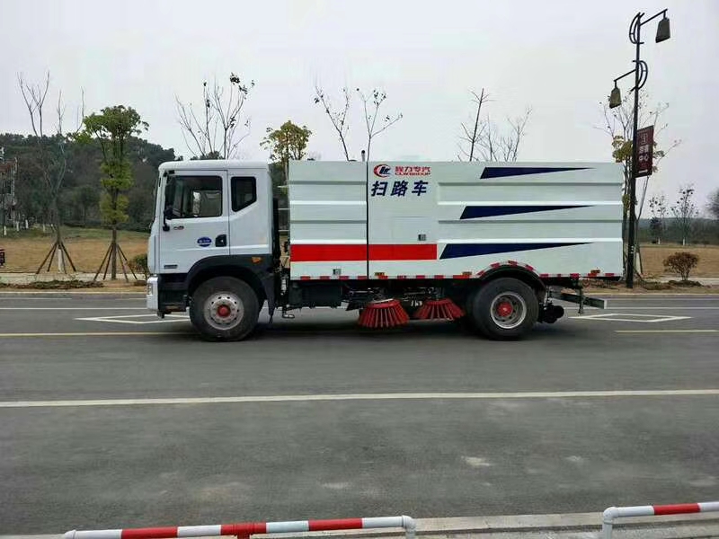 1. 采用吸掃結合的方式收集垃圾,濕式除塵、電液控制,液壓傾翻卸料的作業方式對路面進行清掃作業。