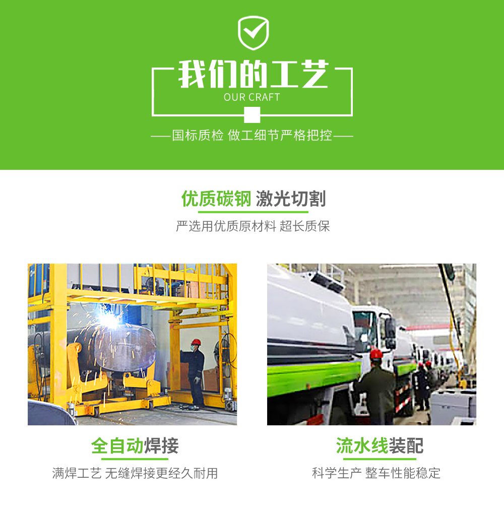 用功能配置:罐體實際容積約為12--14--16立方米,采用武鋼優質碳鋼板卷壓成型,自動焊接。配備專用灑水泵,自吸自排,前噴后灑、側噴、后工作平臺及灑水高壓炮。灑水泵自吸高度為6米左右,整車灑水寬度14米左右,后工作平臺高壓水炮上下左右360°旋轉可調成:直沖狀、大雨、中雨、霧狀、有效射程≥28米,整車帶接頭、水位計,自流閥。后工作平臺主管路帶1寸澆花接口,附送2根3米水管,1個爬梯,兩側及后保險杠。