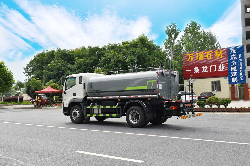 專用功能配置:罐體實際容積12-14立方米,公告有效參數11.56立方米、采用武鋼優質碳鋼板卷壓成型配備專用灑水泵,自吸自排前噴后灑側噴后工作平臺及灑水高壓炮灑水泵自吸高度為6米左右,整車灑水寬度14米左右,后工作平臺水炮可調成:直沖狀大雨中雨小雨毛毛雨,有效射程28,整車帶接頭水位計,自流閥后工作平臺主管路帶1寸澆花接口,附送23米水管,1個爬梯,兩側及后保險杠。