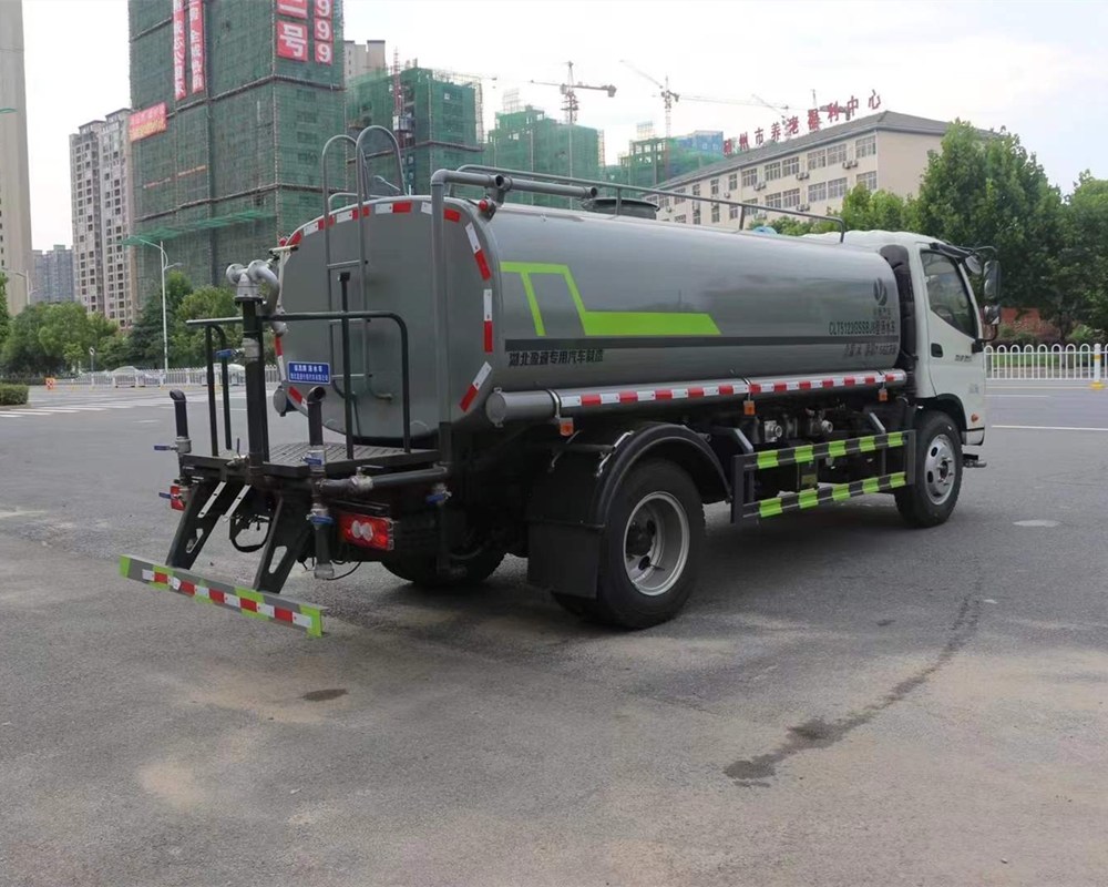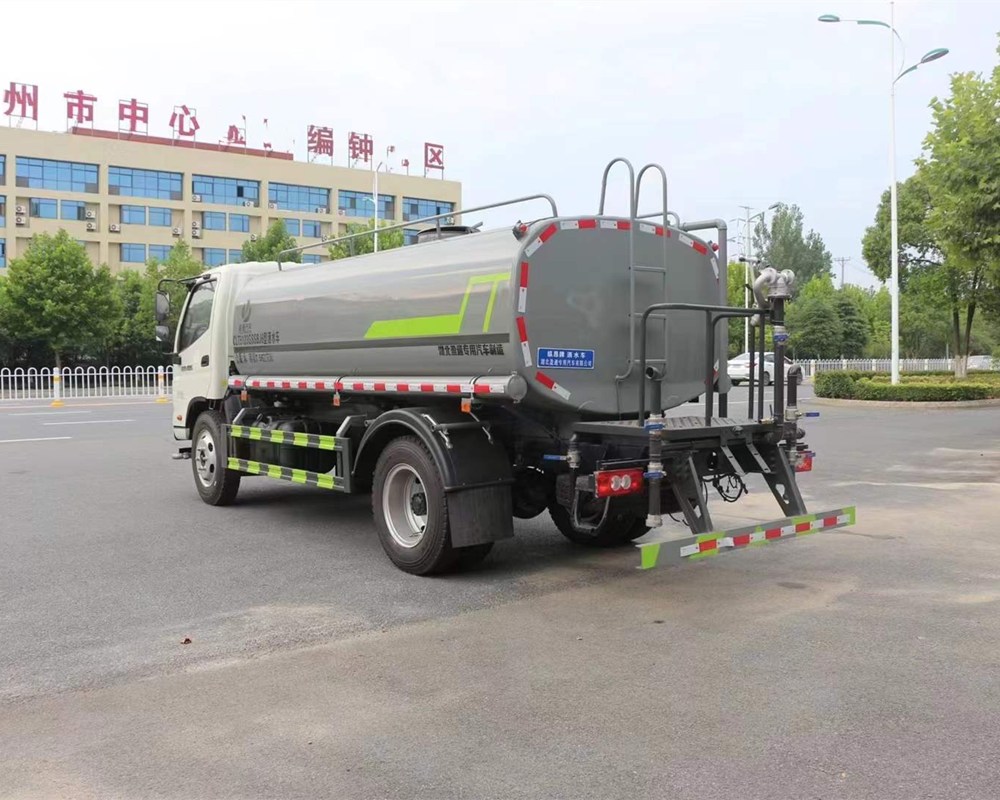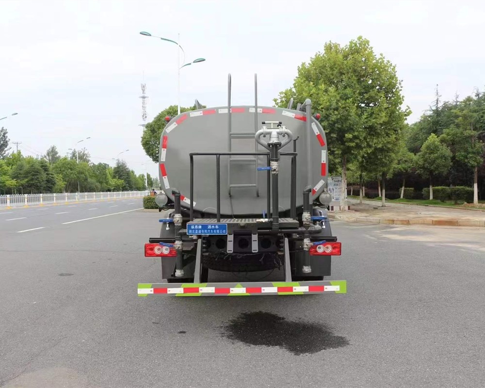 灑水車專用功能配置:罐體實際容積約為9.35立方米,(罐體有效參數7.56立方米、額定載質量7200kg、)采用武鋼優質碳鋼板卷壓成型。配備專用灑水泵,自吸自排,前噴后灑、側噴、后工作平臺及灑水高壓炮。灑水泵自吸高度為6米左右,整車灑水寬度14米左右,后工作平臺水炮可調成:直沖狀、大雨、中雨、小雨、毛毛雨,有效射程≥28米,整車帶接頭、水位計,自流閥。后工作平臺主管路帶1寸澆花接口,附送2根3米水管,1個爬梯,兩側及后保險杠。