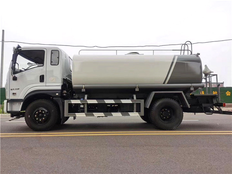 上裝配置:罐體采用國標Q235碳鋼板材制作,罐體厚度4mm,前后封頭5MM加厚型,罐體實際容積12方(噸),產品質量成熟可靠,設計先進合理,比同類灑水泵吸程遠、壓力大、使用壽命長,可泵進泵出。前沖、后灑、側噴,消防栓接口,帶后工作平臺及綠化灑水高炮(可全方位旋轉,可連續調成直沖狀、大雨、小雨、毛毛雨),水位計,兩根等長輸水管,其余標配。