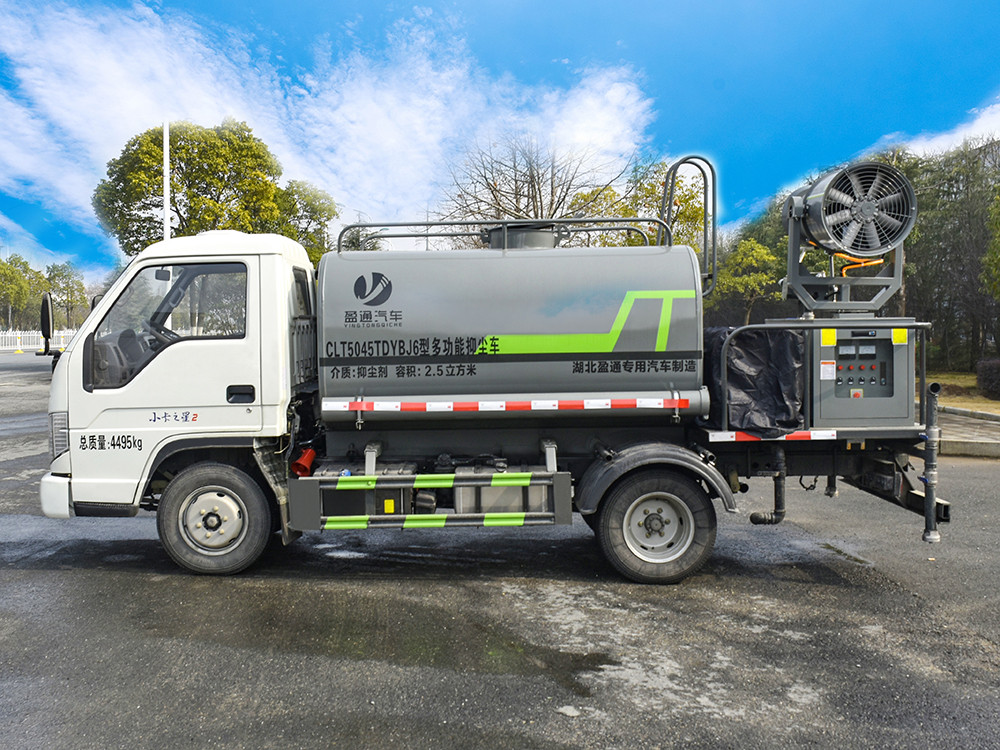 福田小卡 2 2.7 方抑塵車-灑水車產品產品主要技術參數 序號 名稱 型號、規格 1 整車型號 CLT5045TDYBJ6 型多功能抑塵車 2 發動機型號 Q23-95C60 3 發動機馬力/功率 全柴 95 馬力/70KW 4 發動機排量 2300ML 5 變速箱 蒙沃 5 檔箱 6 輪胎規格 6.00 鋼絲胎 7 軸距 2600 8 總質量 4495KG 9 整備質量 2700KG 10 額定載質量 1665KG 11 整車尺寸(長×寬×高) 5.365*1.9*2.6 12 罐體容積 2.7 方 13 燃料種類 柴油 14 排放標準 國六 15 水泵型號 40/50 16 罐體材質 Q235 碳鋼