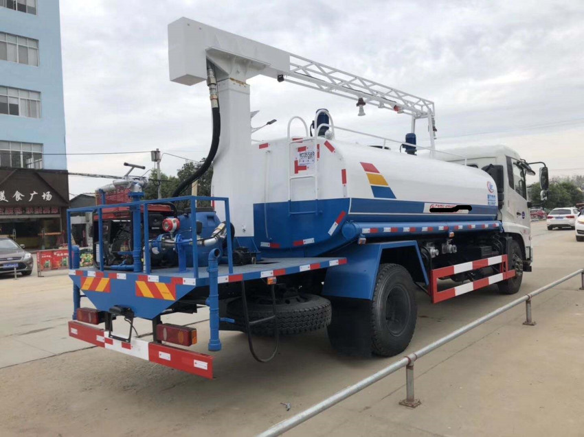 功能配置:帶前部沖洗路面噴灑裝置,兩側面噴灑裝置,帶后部工作平臺、平臺上安裝綠化灑水炮(炮噴射形狀可調),可調直沖狀、大雨、中雨、毛毛雨,可連續調節,射程可達28米,垂直吸程≤7米,另加裝高效率車載式風送噴霧機,噴藥炮霧化效果好,可遠程噴霧。帶消防接口、自流閥,可自吸自排。