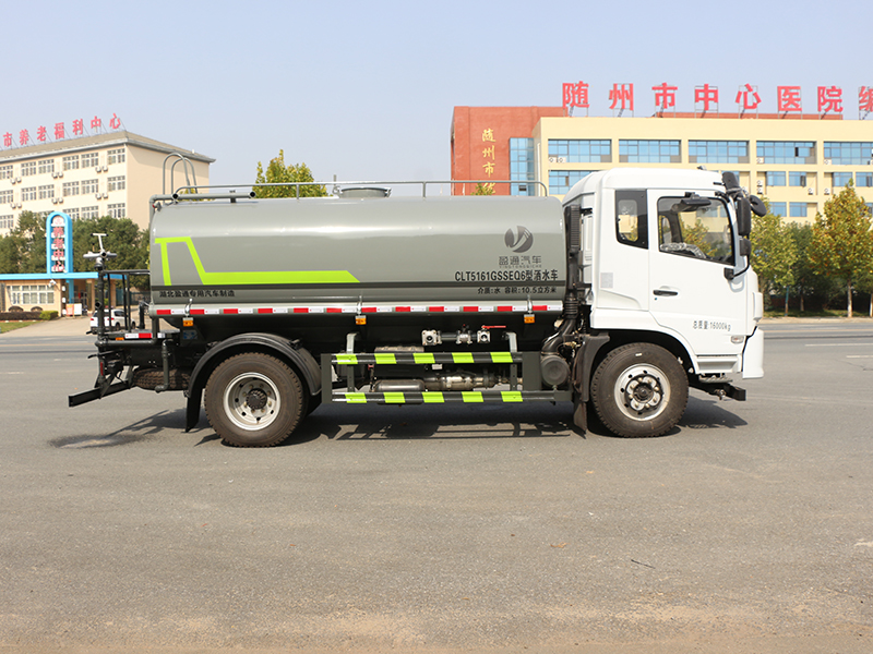 標(biāo)準(zhǔn)配置灑水車(chē)主要裝備有:前沖(沖洗公路路面)、后灑(公路路面養(yǎng)護(hù))、側(cè)噴、高位側(cè)花灑(路邊綠化帶優(yōu)化);后工作平臺(tái)高壓水炮,可調(diào)節(jié)成柱狀,射程≥28m;也可調(diào)節(jié)成霧狀,射程≥30米,水泵自吸高度:≤7m,灑水寬度:≥15m。側(cè)防護(hù)網(wǎng),自流閥,消防接頭。灑水車(chē)水泵為常壓水泵,功能可以抽水、排水。另外根據(jù)用戶(hù)要求,可加消防泵、噴霧機(jī)、農(nóng)藥卷盤(pán)、農(nóng)藥柱塞泵。罐內(nèi)可以做防腐防銹、電磁閥氣動(dòng)閥自動(dòng)放水等****,以滿(mǎn)足不同用戶(hù)需求。