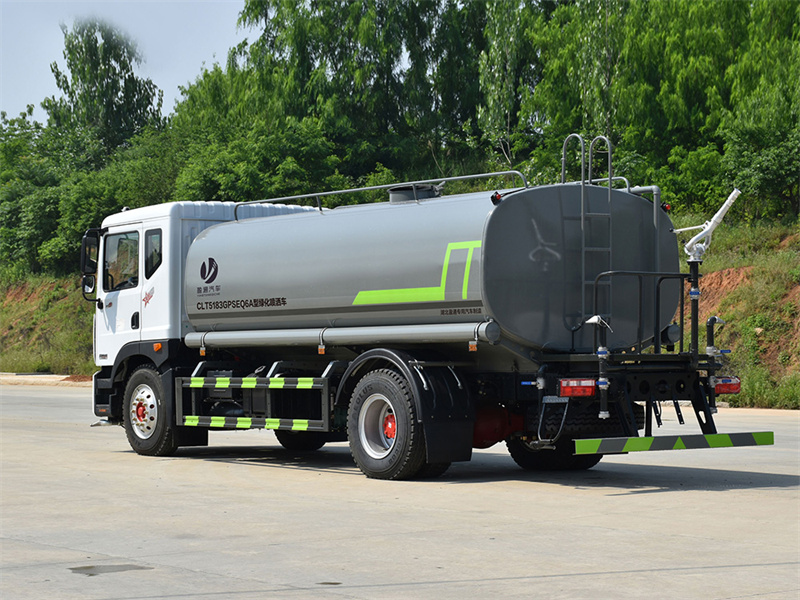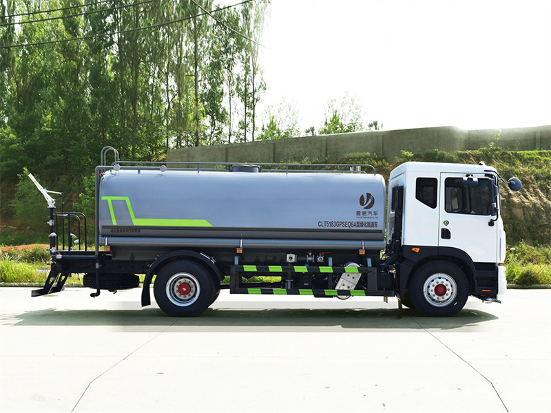 該車主要用于城鄉園林綠化噴灑;主要裝置為罐體及噴灑裝置;隨底盤選裝駕駛室,選裝燃油箱,電瓶,尿素罐,儲氣筒左右安裝位置.罐體總容量:11.61立方米;罐體有效容積:11.05立方米;罐體外形尺寸(長×長軸×短軸)(mm):5000×2350×1600,5000×2350×1520;ABS系統生產廠家,型號:焦作博瑞克控制技術有限公司,J ABS;襄陽東風隆誠機械有限責任公司,ABS/ASR-24V-4S/4M.側、后防護材料均為:Q235碳鋼,連接方式均為:螺栓連接,后部防護截面尺寸(mm):120×50,后部防護離地高度(mm):490.僅采用底盤4700mm,4500mm軸距改裝.選裝限速裝置,限速89.選裝噴灑裝置樣式,選裝弧形噴霧裝置,選裝箭頭燈裝置,選裝水炮支架位置,選裝自動球閥安裝位置,選裝罐體樣式,選裝前部自動炮樣式,前伸500mm,整車長度為8950,8800mm.選裝罐體頂部方形罐口裝置及高位花灑裝置,選裝罐口位置,選裝工具箱,選裝尾部自流口裝置,后部作業燈僅在作業時開啟,車輛行駛過程中不可開啟.